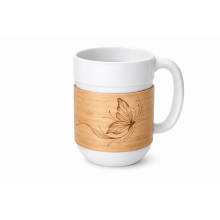 Štýlový keramický hrnček Amelie, objem 310 ml - Štýlový keramický hrnček Amelie s objemom 310 ml je vybavený odnímateľnou vrstvou z prírodného bambusu, ktorá poskytuje ideálnu plochu pre laserové gravírovanie loga, textu alebo vlastného motívu. Masívna konštrukcia hrnčeka znižuje prenos tepla z horúceho nápoja a bezpečne chráni používateľa pred popálením.